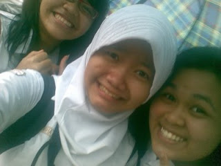 nah, ada 1 lagi. gue kan diajakin solat sama fitri ama diva juga. kita mau solat di ujung gang luar sono lah. Nah, kita wudhu gitu. ganti-gantian. tapi solat bertiga barengan. Kan fitri mulai duluan, gue mulai sekitar 30 detik kemudiannya. diva di belakang fitri. Secara gue solat emang cepet, si fitri gue balap. Pas gue udah salam, gue mau salamn sama fitri dia malah bilang
